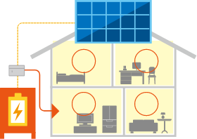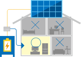 ※蓄電池には、「特定負荷型」と「全負荷型」の2つがあります。停電時、特定負荷型はあらかじめ指定した一部(特定のコンセント)の電気のみ使用でき、全負荷型は家中すべての電気が使用できます。